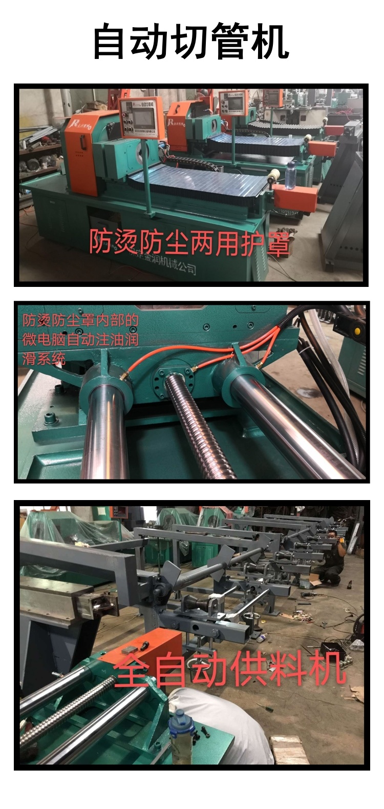 五、送料定尺用精密滾珠絲桿和導(dǎo)程用圓軌上配有防燙防塵護(hù)罩,避免切削下來的鐵屑或被切割的鋼管上的鐵銹掉落到精密絲桿和導(dǎo)程圓軌上縮短使用壽命。