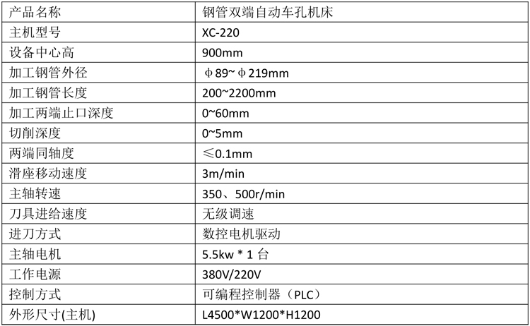 鋼管雙端自動車孔機床產(chǎn)品特性及參數(shù)